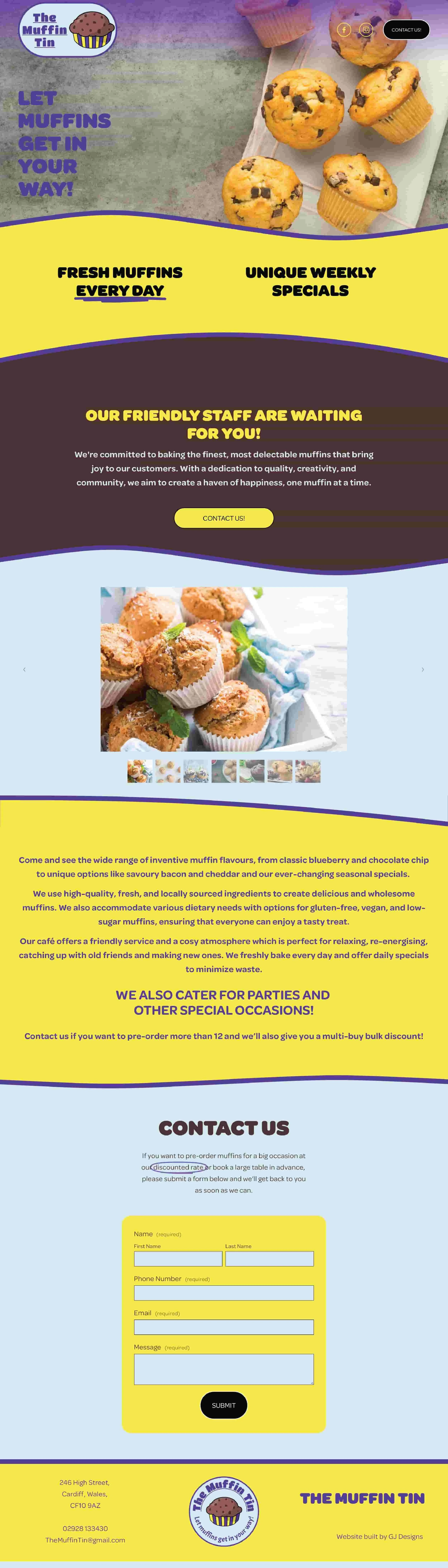 The Muffin Tin is a charming, one-page website designed for a small but beloved café that specialises in freshly baked, homemade muffins. Known for its warm atmosphere and delicious treats, The Muffin Tin wanted an online presence that would capture its personality, showcase its products, and make it easy for customers to get in touch. This project is a perfect example of how a simple, well-designed website can make a big impact for a local business.